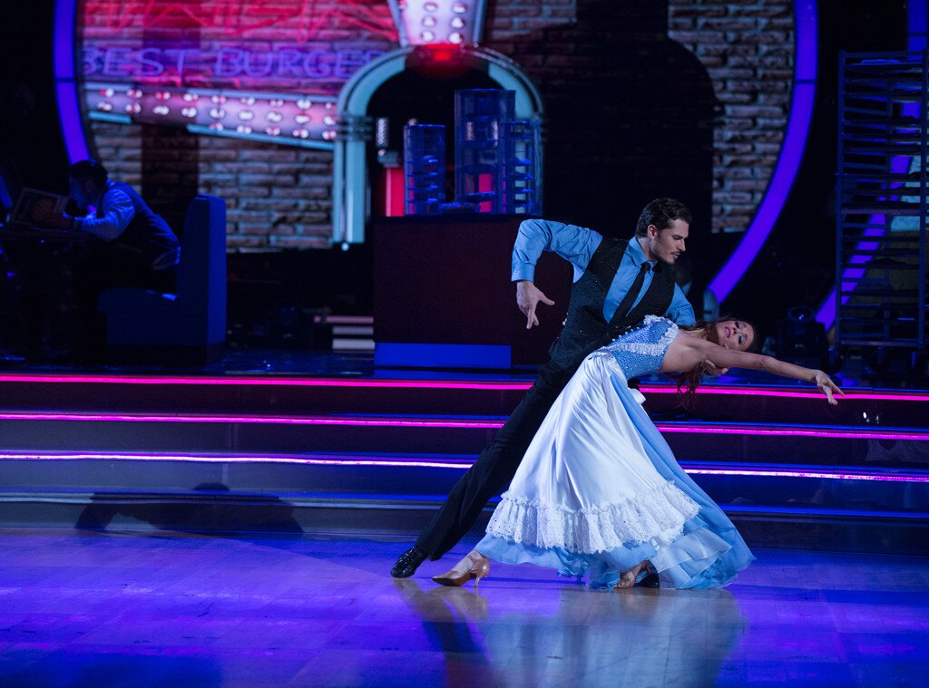 Jana Kramer has a lot to get emotional over. The actress and singer reunited with her pro partner Gleb Savchenko, who was sidelined from rehearsals all week, and the received not one, but two perfect scores. The duo got two 40s from Carrie Ann Inaba, Idina Menzel, Julianne Hough and Bruno Toniolifor the waltz to "She Used to Be Mine" from the Broadway musical Waitress and a contemporary dance as part of a team to Sia's "Bird Set Free." Yet they found themselves in the bottom two, again.